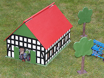 Produktfotos 1:32Fachwerkstall und Stall naturbelassen